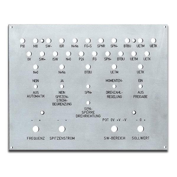 Gravuren, Skalierungen und Flachschleifarbeiten für gelieferte Bauteile und Materialien.